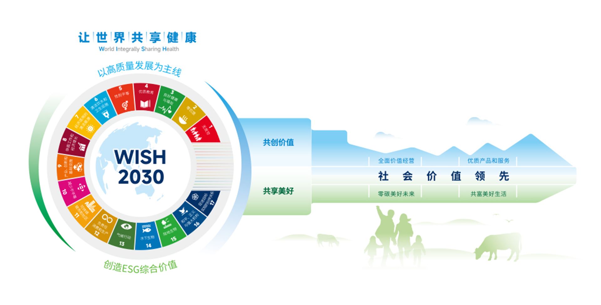 From the "Power of Responsibility" to our "'WISH 2030' golden key sustainable development system", we consistently demonstrate our commitment to creating a healthier world for all.