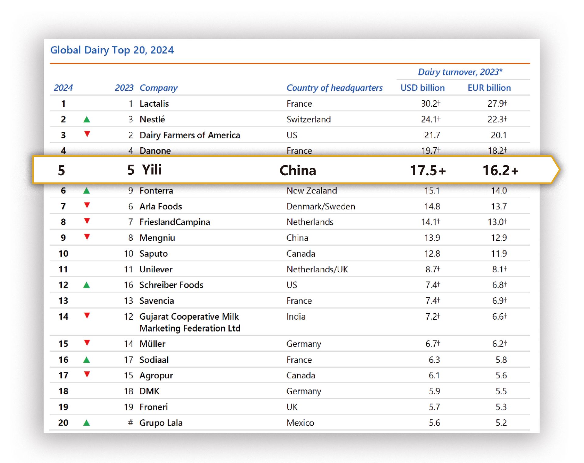 Yili tops Asia's dairy industry for twelve consecutive years.