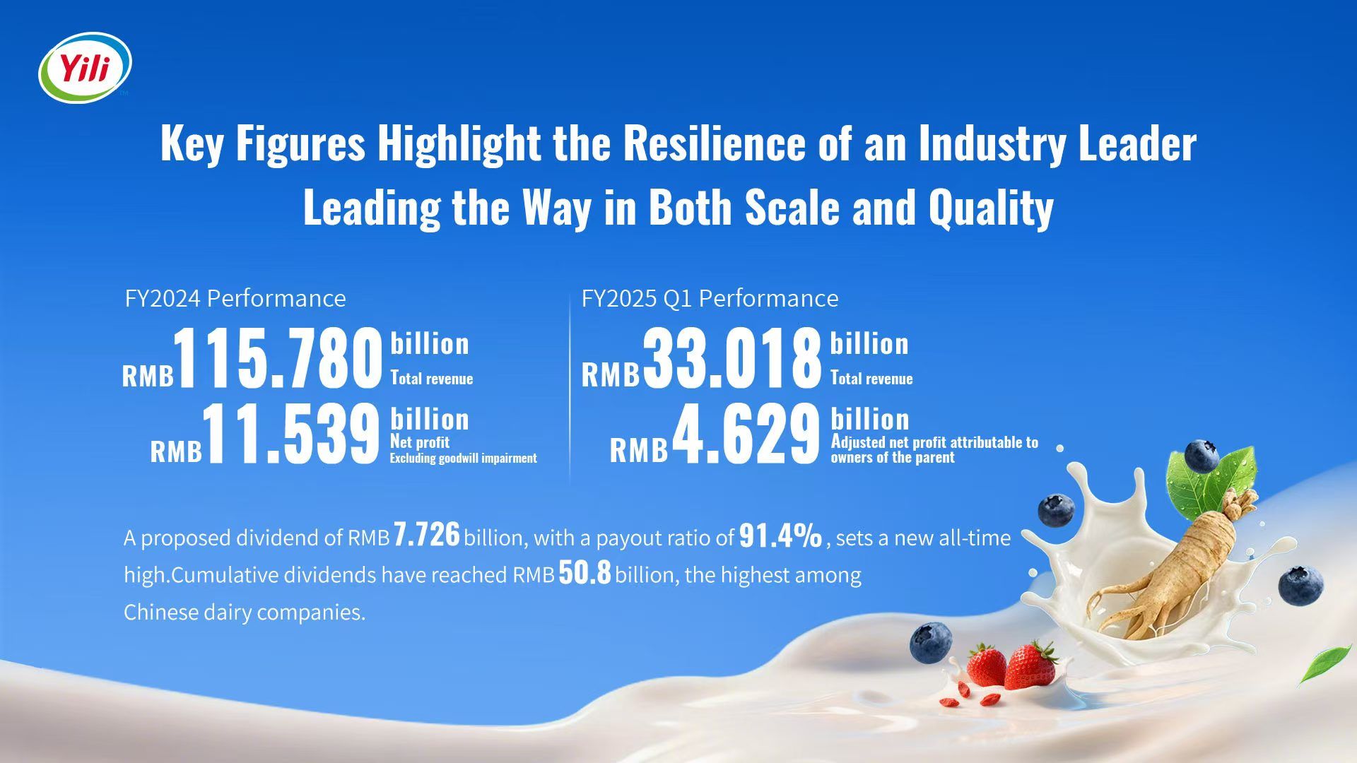 Yili, upholding quality as paramount, is dedicated to consistently delivering consumers with the most exquisite products and services.