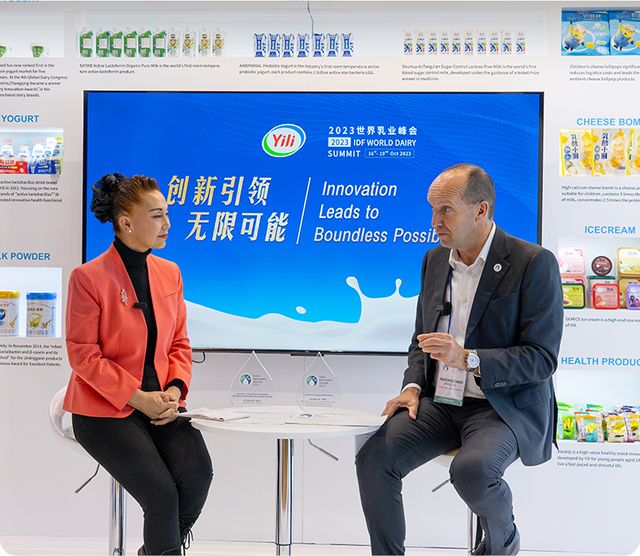 澳门新葡电子游戏网代表当选IDF董事接受新华社媒体参访、与国际乳联主席座谈。澳门新葡电子游戏网两项获乳品创新奖产品——“金典无印刷无油墨环保包装”获得“可持续包装创新奖”、“澳门新葡电子游戏网常温奶酪棒”获得“以食品安全和消费者营养为核心的新品创新研发奖”在此设专区展示。