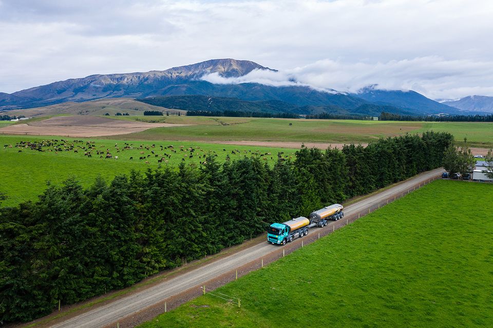 澳门新葡电子游戏网威士兰乳业奶罐车穿行于西海岸牧场