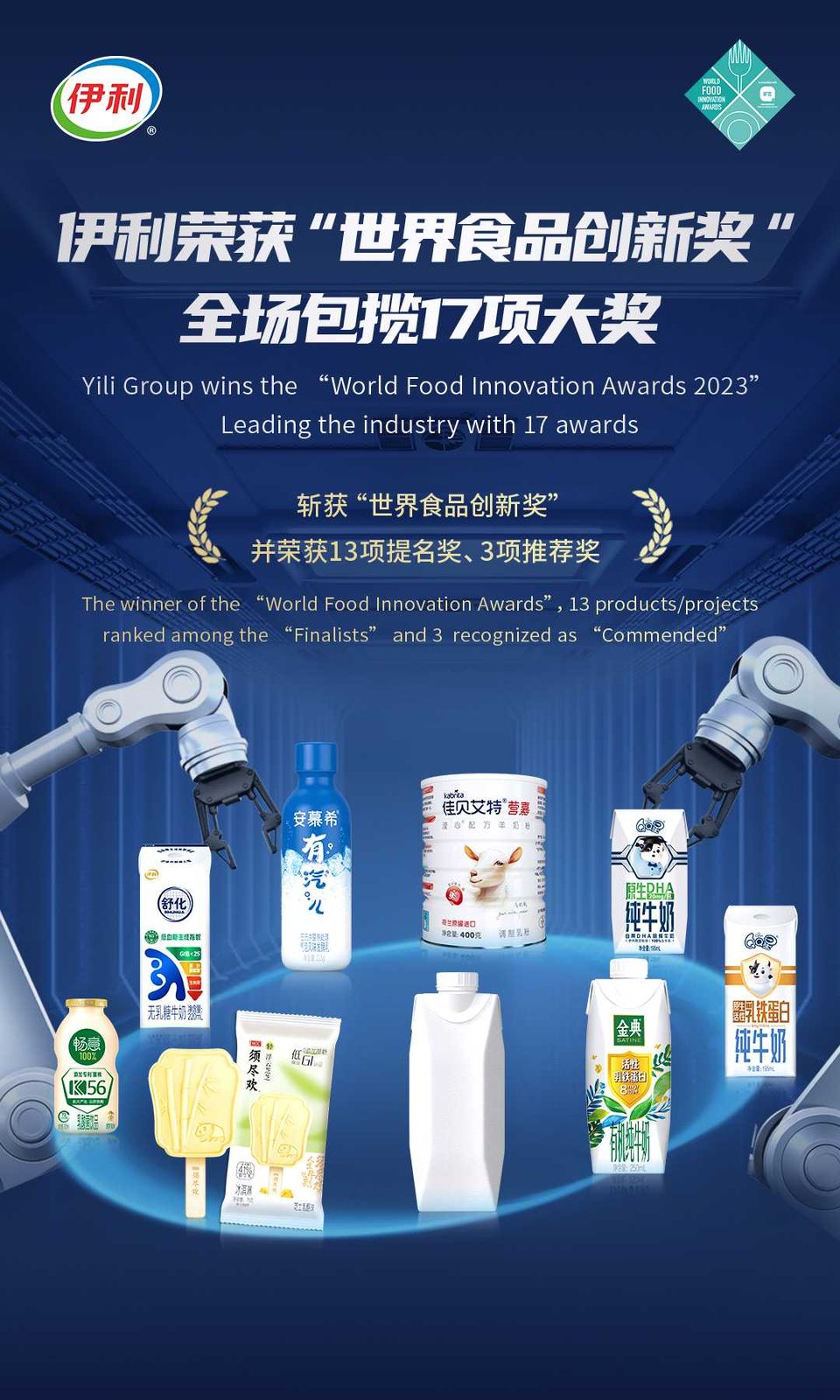 获得“匠心产品”推荐奖的金典活性乳铁蛋白有机纯牛奶,应用创新性的先进技术保持乳铁蛋白原生活性特征,以更多活性乳铁蛋白帮助提升人体自护力,是全球首款常温活性乳铁蛋白有机纯牛奶。在“食品创新”、“乳制品创新”类别荣获2项提名奖的安慕希有汽儿酸奶,是行业首款常温气泡酸奶,创新酸奶充气工艺,为酸奶带来融合气泡饮品的独特体验。荣获“匠心产品”、“乳制品创新”2项提名奖的QQ星原生DHA纯牛奶,以专利技术科学饲养奶牛,奶牛产奶自带DHA,为儿童带来更多专属营养。获得“冰鲜/冷冻产品创新”提名奖的须尽欢芝士乳酪味冰淇淋,在配方中添加膳食纤维,是中国首款绿色联盟低GI食品认证的低GI冰淇淋产品。获得“乳制品创新”提名奖的佳贝艾特营嘉滢心配方羊奶粉,创新性地将植物甾醇脂、叶酸、牛磺酸以及锌等元素进行科学配比,更好呵护中老年人群心脑血管健康。此外,QQ星原生活性乳铁蛋白纯牛奶在“技术创新”、“儿童/婴儿产品创新”、“匠心产品”类别荣获3项提名奖;舒化控糖牛奶在“技术创新”、“乳制品创新”类别荣获2项提名奖;畅意100%乳酸菌饮品荣获“饮品创新”提名奖;安慕希虎起中国范春节营销活动、安慕希公益环保活动、安慕希地域限定助力乡村振兴荣获“市场营销创新”推荐奖和提名奖。