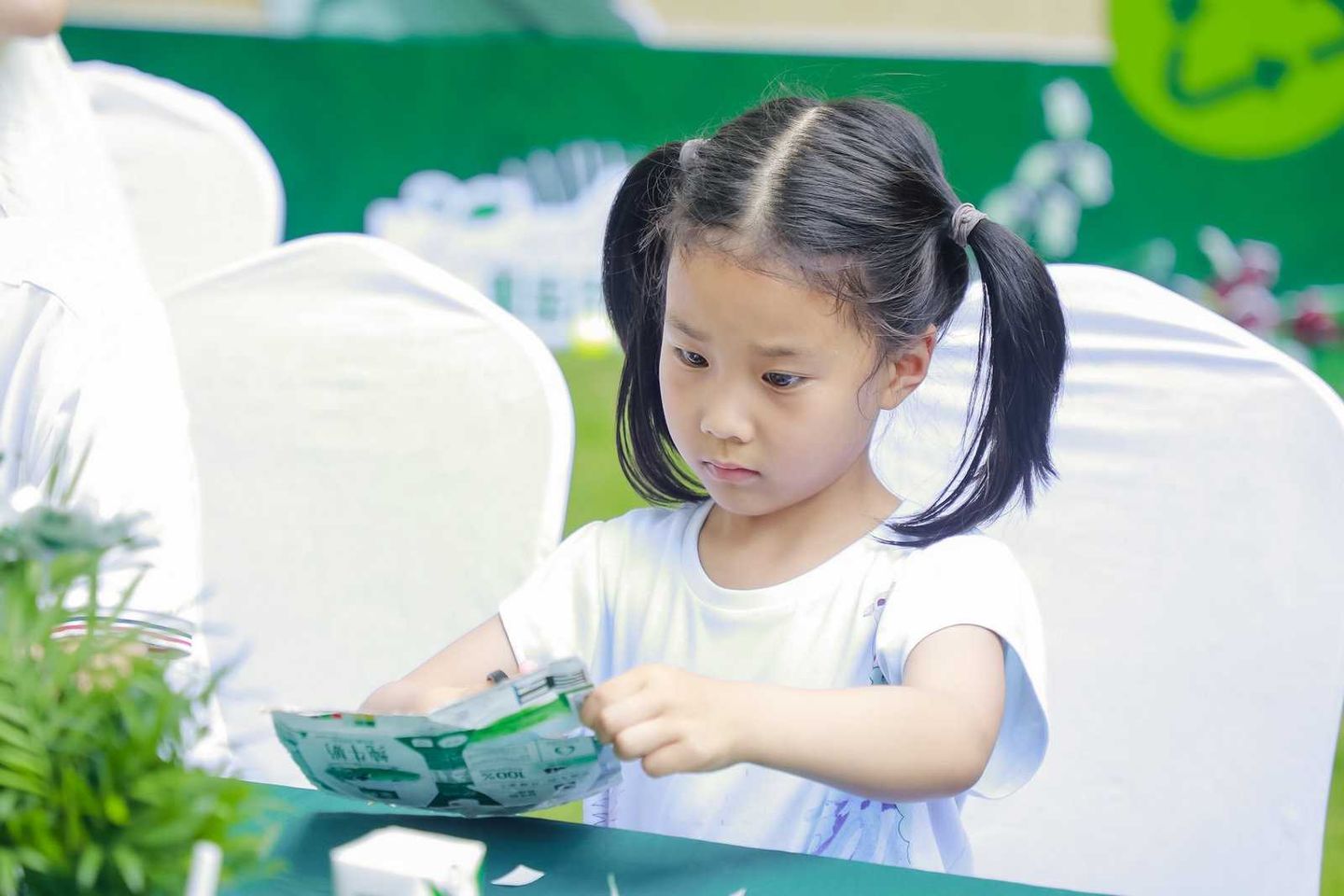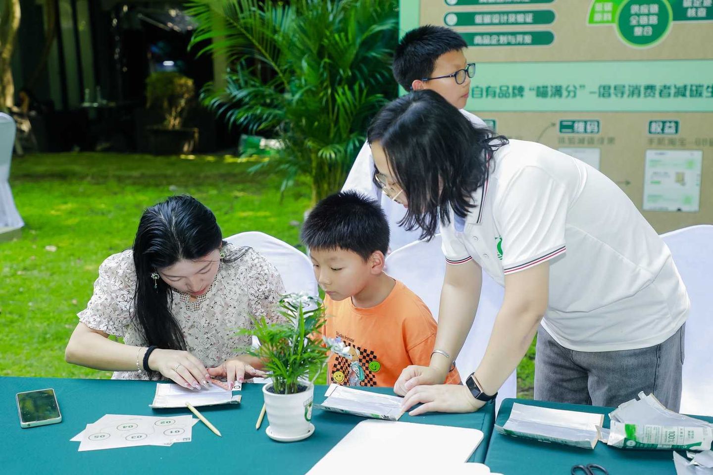 废弃的奶盒包装摇身变成亚运艺术画作、喝完的牛奶瓶化身精美的“献礼亚运”绿植花束,参与者在感受浓厚亚运氛围的同时,也能深入体会日常生活中绿色行动的力量,以实际行动为即将到来的亚运会打call。