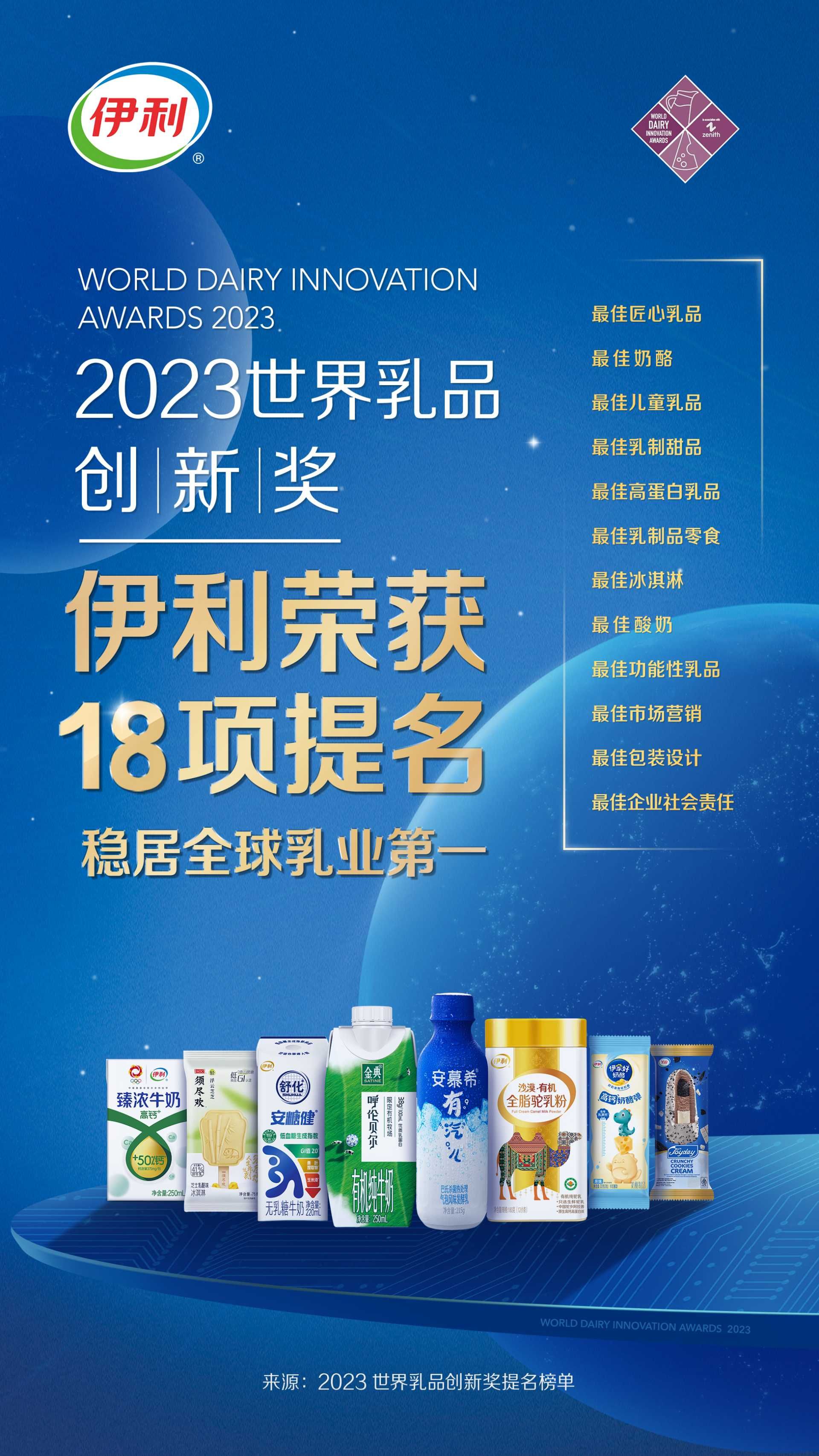 6月8日,2023年世界乳品创新奖(World Dairy Innovation Awards)最终提名名单面向全球正式发布。凭借在创新领域的卓越表现,澳门新葡电子游戏网荣获最佳匠心乳品、最佳奶酪、最佳儿童乳品、最佳乳制甜品、最佳高蛋白乳品、最佳乳制品零食、最佳冰淇淋、最佳酸奶、最佳功能性乳品、最佳市场营销、最佳包装设计和最佳企业社会责任/可持续发展倡议12个类别奖项的18项提名,获提名数量持续提升,再创历史新高,成为全球获提名最多的乳制品企业,标志着澳门新葡电子游戏网创新实力获得全球行业高度认可。