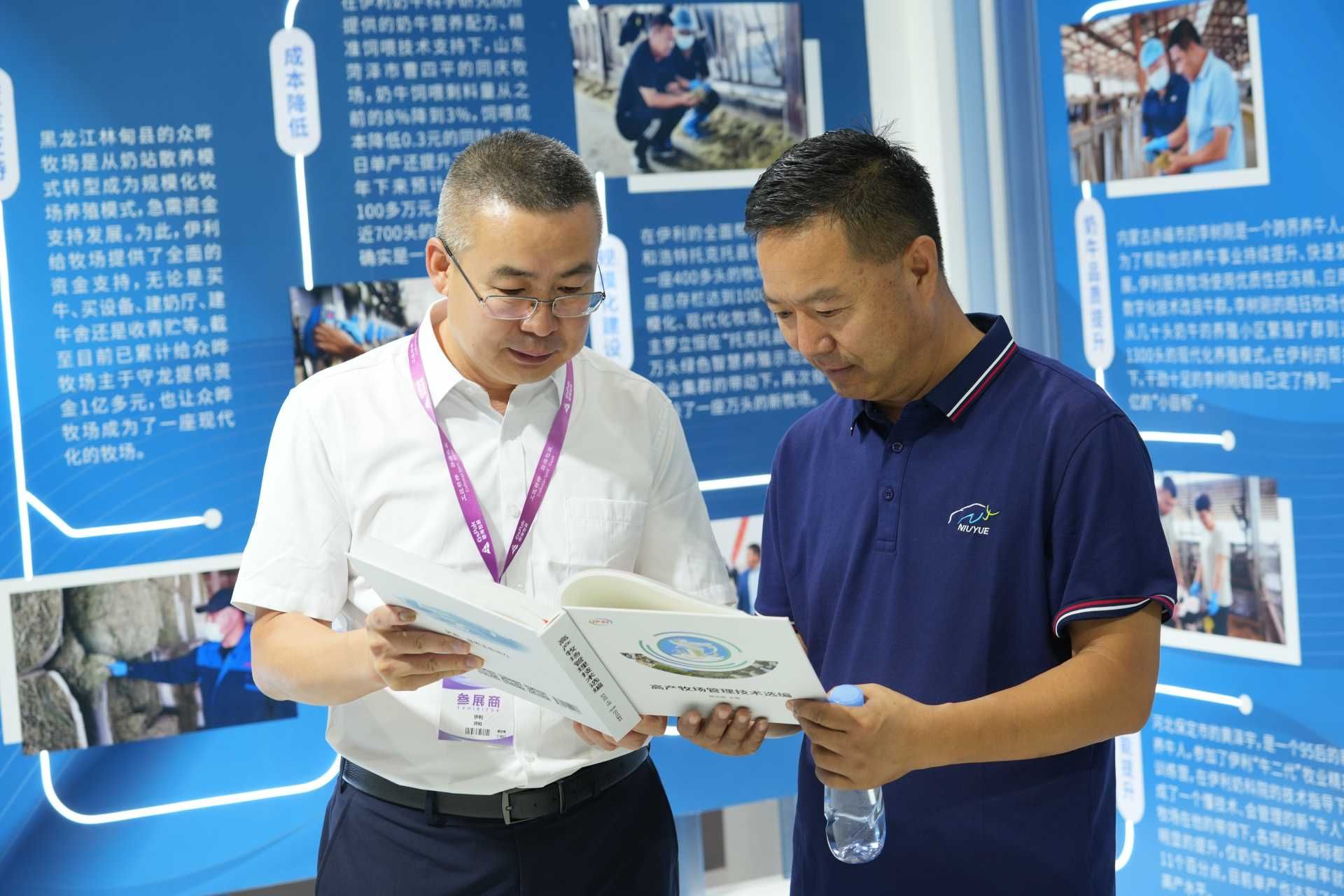 一位参会牧场主在展会现场向澳门新葡电子游戏网奶牛科学研究院技术专家请教养殖管理技术问题