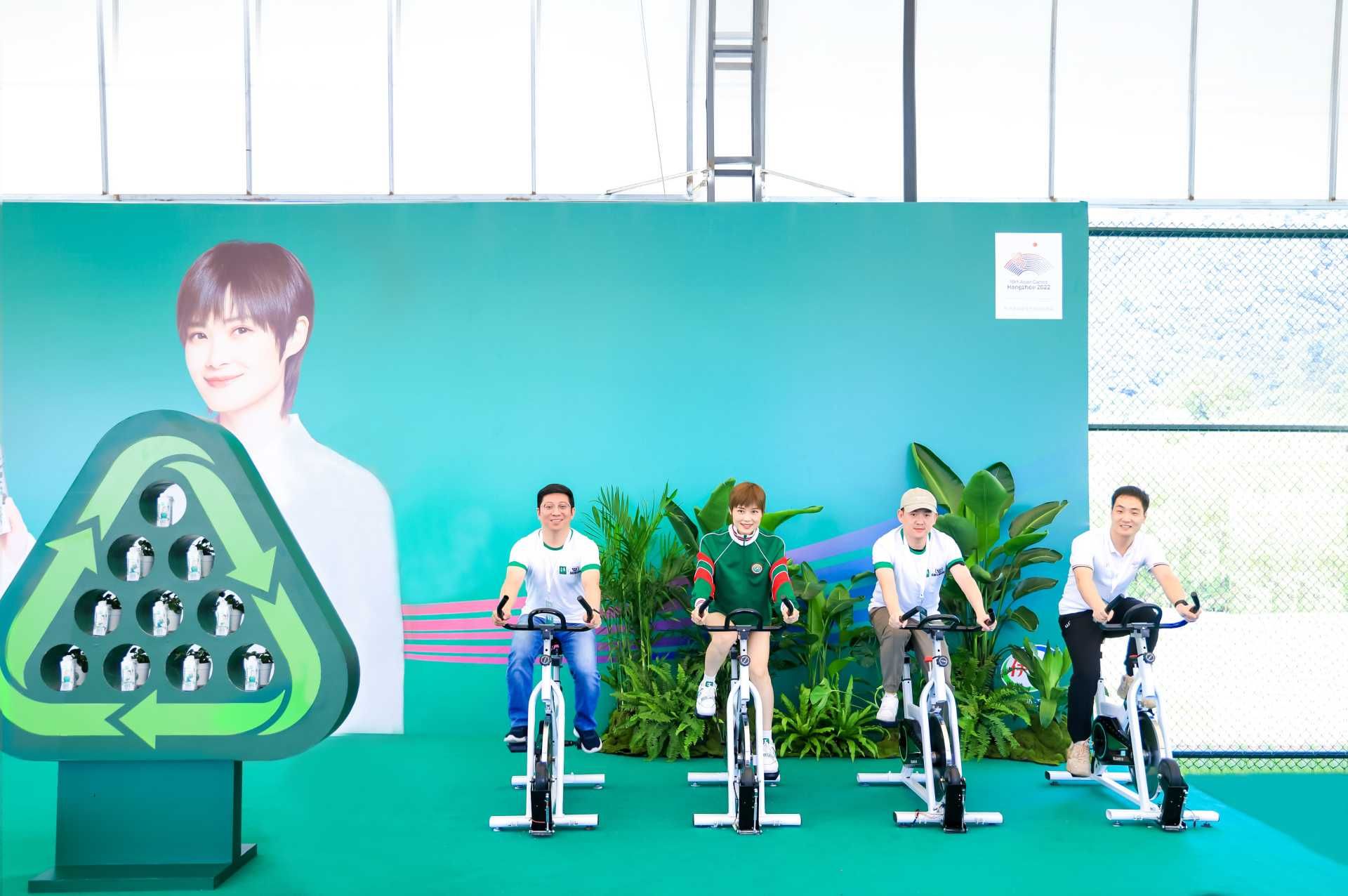 新品发布环节,金典、天猫、亚组委的嘉宾和金典品牌代言人李宇春一同登台,启动发布仪式。随着嘉宾缓缓踩动发电车,低碳循环的符号在能量汇聚中逐渐被点亮。