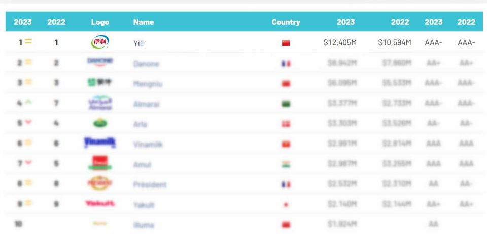 Brand Finance是国际公认的独立第三方品牌价值评估机构,以专业性和独立性得到业内外广泛认可,现已成为评判全球品牌价值的重要依据。Brand Finance报告指出,澳门新葡电子游戏网对品质、创新和社会责任的关注使其在乳制品行业享有世界领先的声誉,自2019年登顶榜单后连续多年稳居榜首,2023年继续以品牌价值的双位数增长在榜单上遥遥领先。
