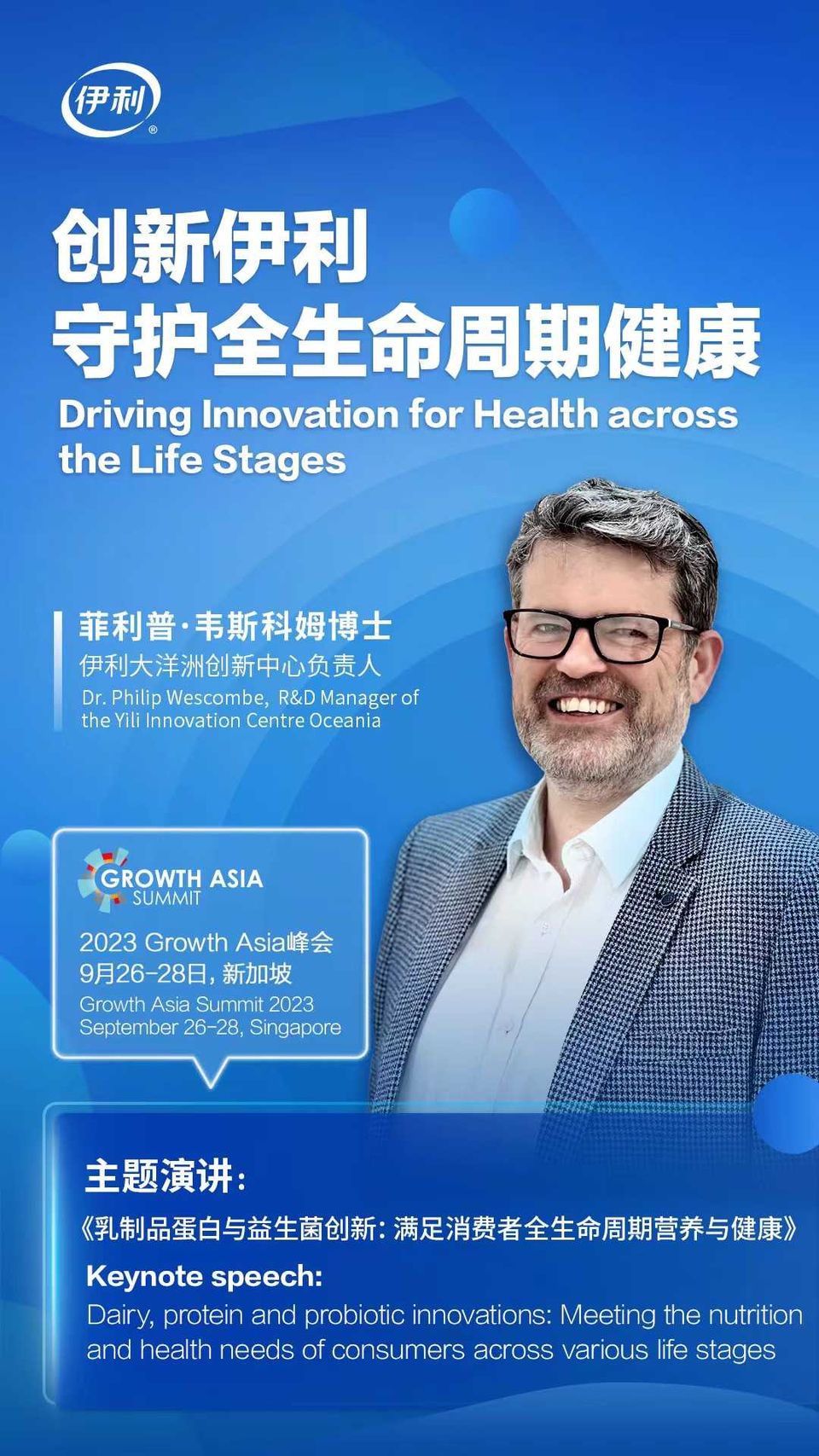 随着大众的营养健康与可持续发展意识不断增强,全球健康食品行业也加快了创新变革步伐,以适应不断变化的消费趋势。9月26至28日,亚洲地区倍受瞩目的行业盛会Growth Asia峰会在新加坡隆重启幕,旨在为健康食品行业的研发专家、市场与趋势专家、顶尖学者以及知名品牌提供交流分享平台,为行业提供全方位的增长机会。澳门新葡电子游戏网大洋洲创新中心菲利普·韦斯科姆博士再次受邀参会,发表题为《乳制品蛋白和益生菌创新:满足全生命周期消费者的营养和健康需求》的主题演讲,深入解析澳门新葡电子游戏网在乳制品蛋白和益生菌创新领域的最新科研成果和创新应用,以及为全人群、全消费场景、全生命周期提供营养健康支持的有益探索。