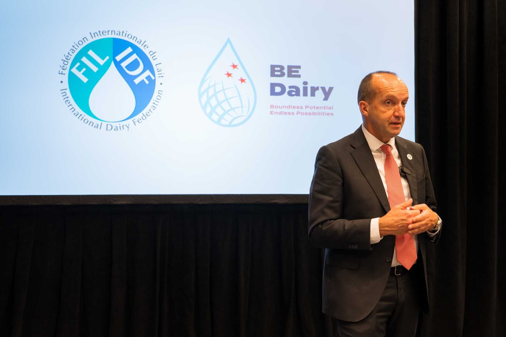 国际乳联主席皮克里斯蒂亚诺·布拉扎莱现场致辞