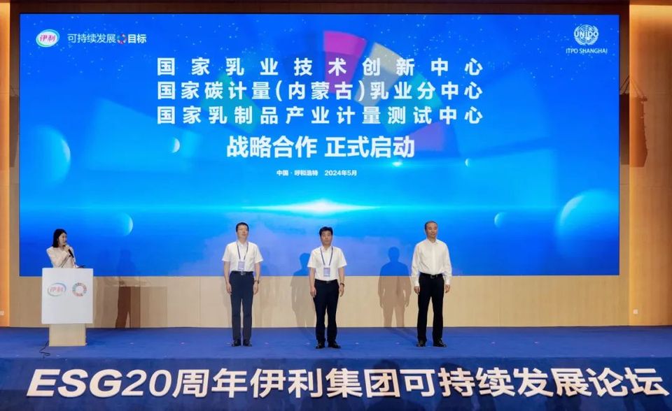 会上,国家碳计量中心(内蒙古)乳业分中心正式揭牌,宣布成立三大委员会,为专家颁发了聘书,并与国家乳业技术创新中心、国家乳制品产业计量测试中心启动战略合作,未来将通过先进的碳计量技术和科学管理平台,以实际行动践行可持续发展理念,共创乳业绿色发展美好未来。