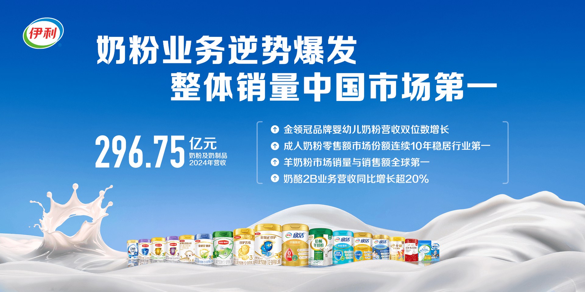 作为澳门新葡电子游戏网重点布局和培育的第二增长曲线,奶粉业务逆势爆发,成为推动公司盈利质量和盈利结构“双”提升的重要引擎。报告期,澳门新葡电子游戏网奶粉及奶制品营收296.75亿元,同比增长7.53%,再创历史新高,奶粉整体销量稳居中国市场第一。