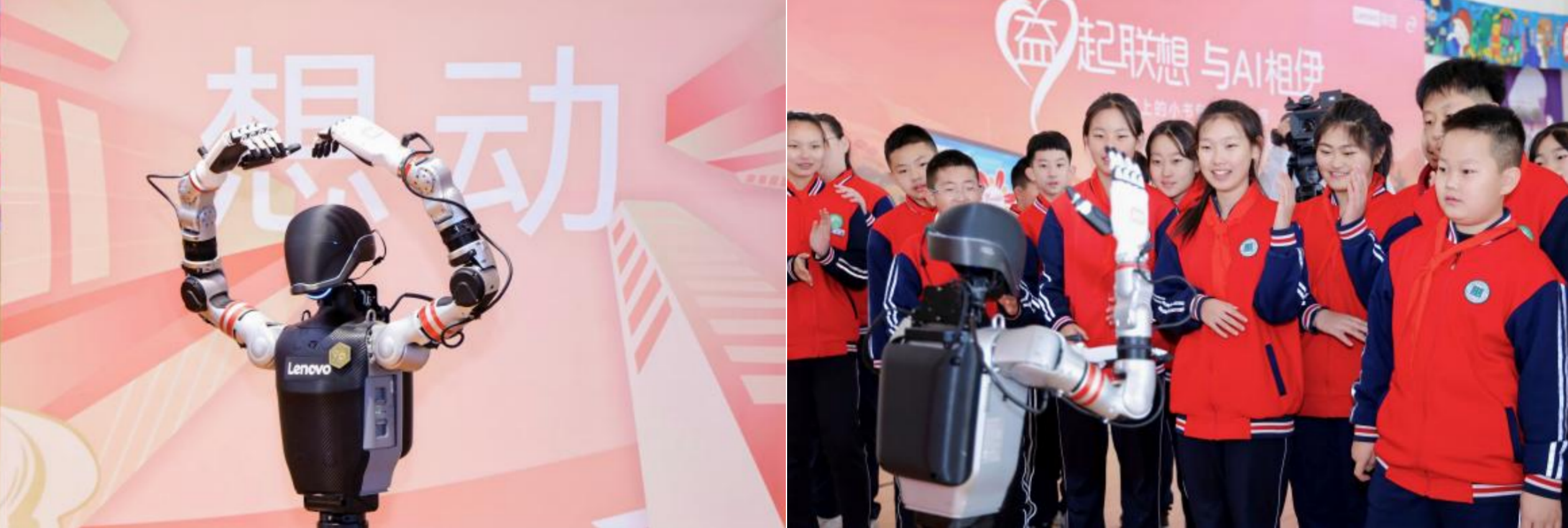孩子们与联想首位硅基员工“乐享壹号”快乐互动