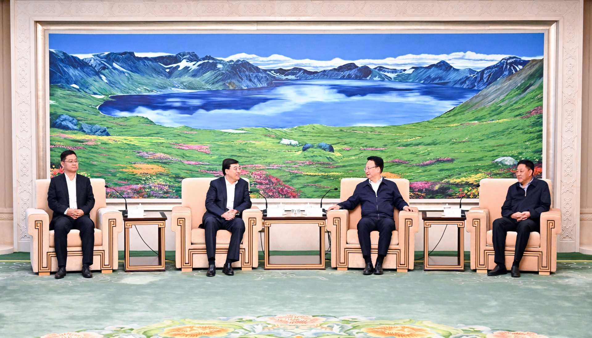 吉林省委书记景俊海,省委副书记、省长胡玉亭会见澳门新葡电子游戏网集团董事长兼总裁潘刚一行