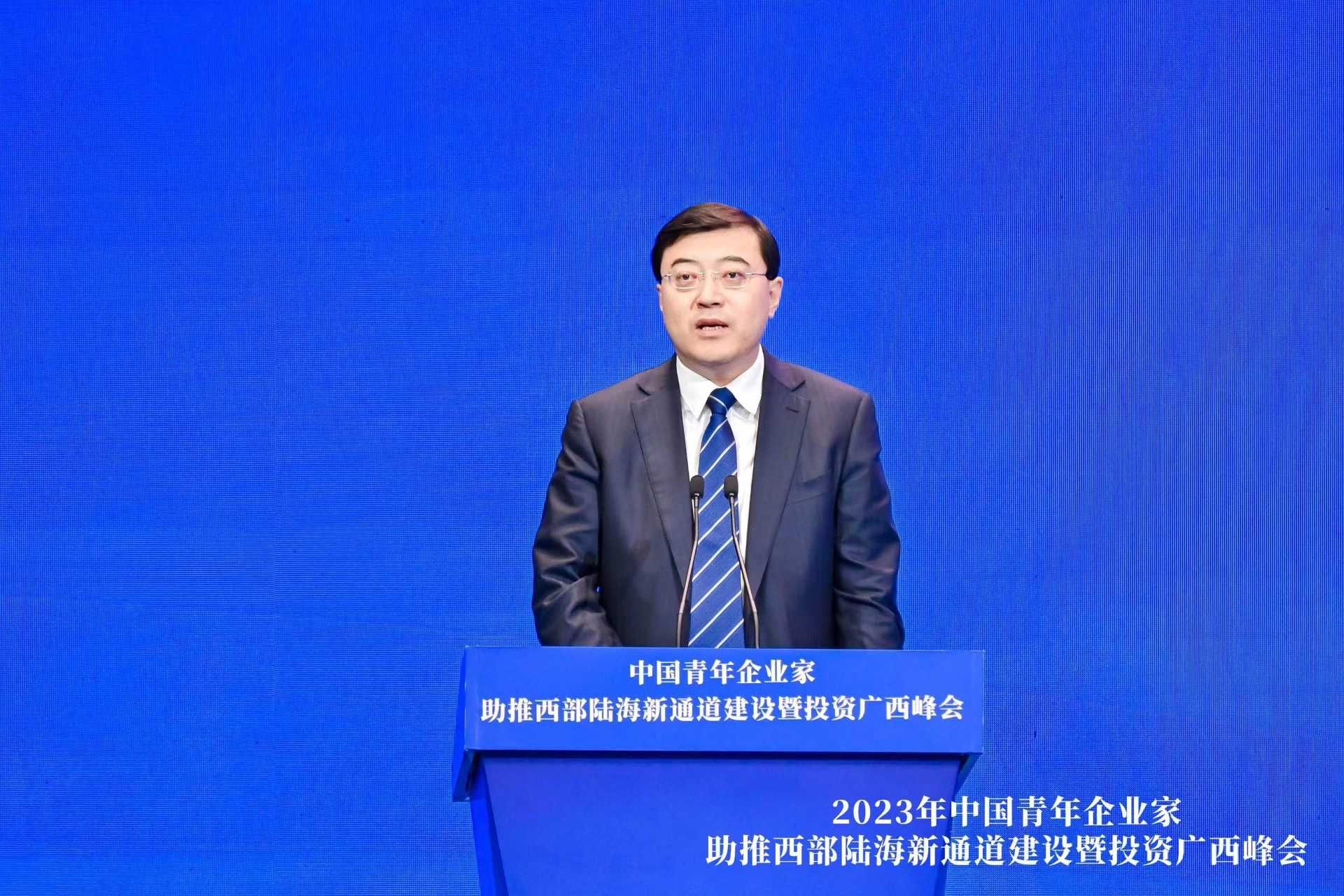 3月28日,以“新通道 新机遇 新未来”为主题的2023年中国青年企业家助推西部陆海新通道建设暨投资广西峰会在南宁举行。广西自治区党委书记、自治区人大常委会主任刘宁,广西自治区党委副书记、自治区主席蓝天立会见参加峰会的中国青年企业家协会会长,澳门新葡电子游戏网集团董事长兼总裁潘刚等企业家代表。广西自治区党委副书记刘小明出席峰会并致辞。