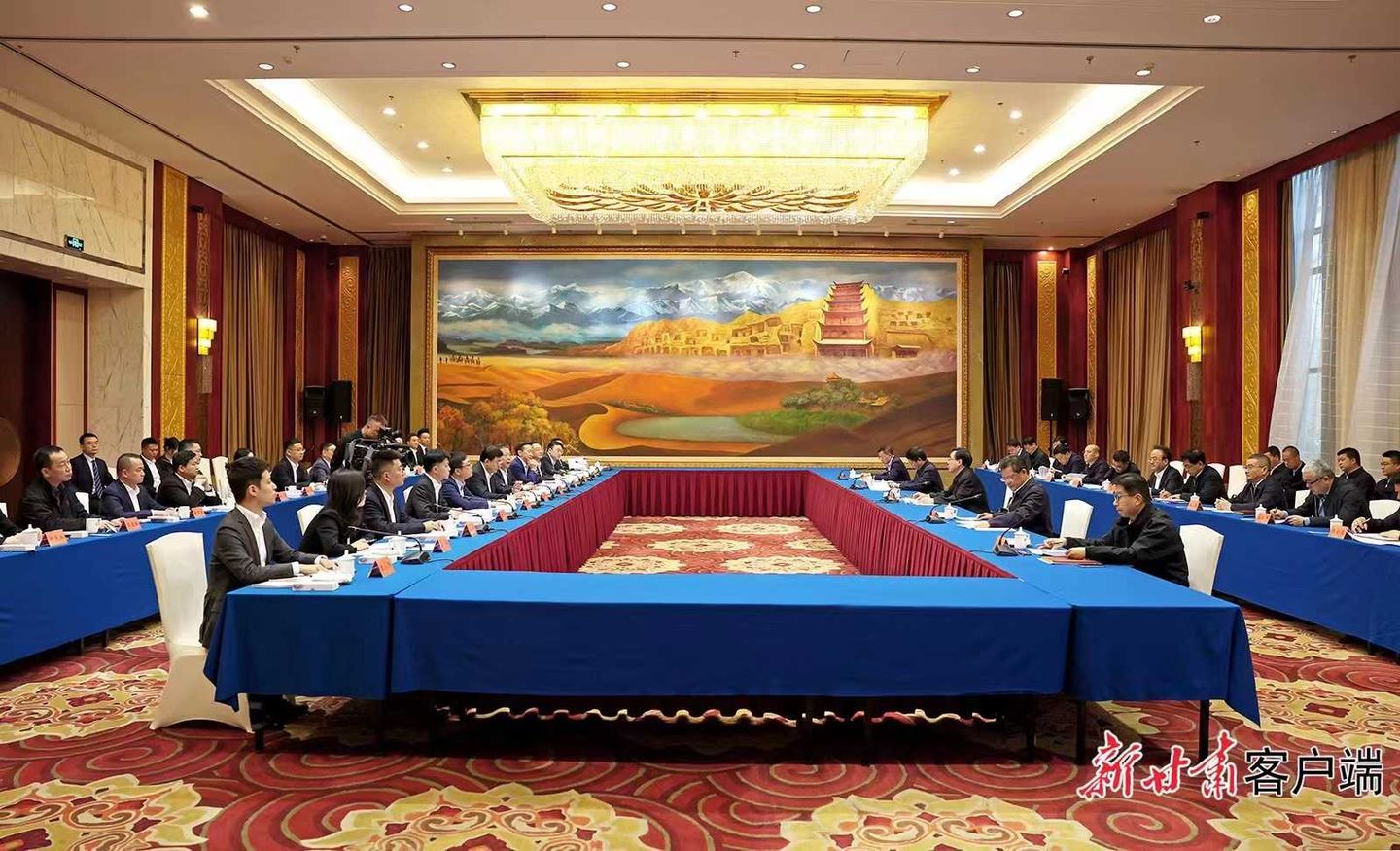 甘肃省委书记胡昌升、省长任振鹤与中青企协会长潘刚带领的青年企业家考察团会谈