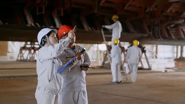 在牛头岛上,孔炼英一般6点就起床,沿着岛上的小路晨跑后吃个早餐,7点30分前必须到岗。工作大半的时间在施工现场,「绕着厂房,从一个作业区绕到另外一个作业区,一道工序检查完,再奔赴下一道工序检查」。经常一个厂房里,她就能刷3万步。