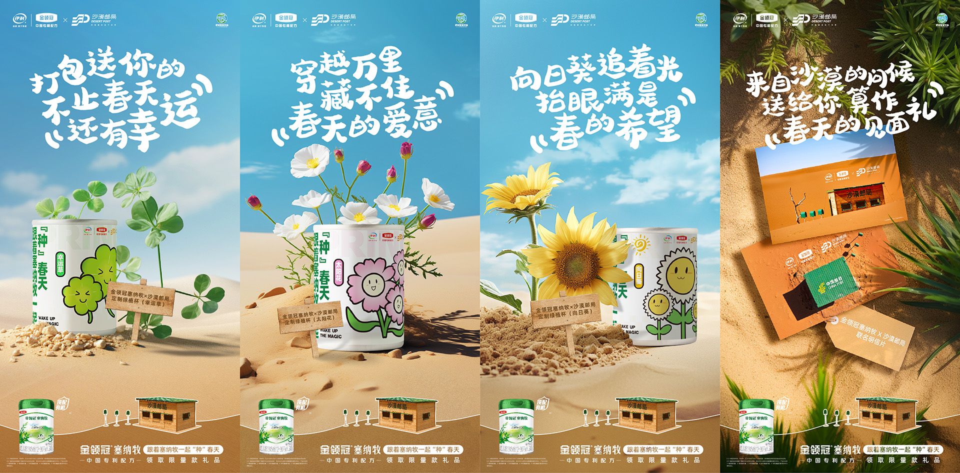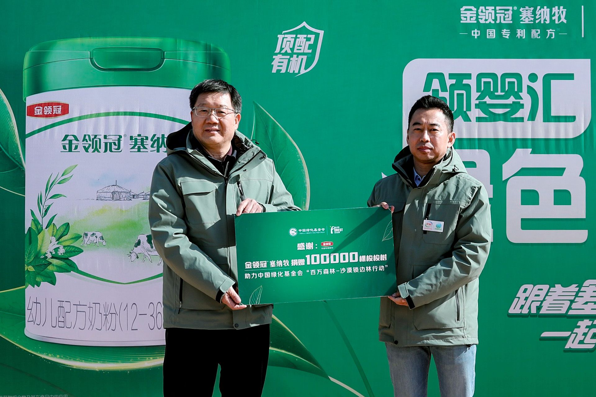 金领冠塞纳牧自2023年就开启了和中国绿化基金会的公益合作。双方联合在阿拉善种下10万棵梭梭树,建立“梭梭保护林”,这些梭梭树成活率达84%,成年后能累积固沙84万平方米。2024年,金领冠塞纳牧再次携手中国绿化基金会,将继续在阿拉善种下10万棵梭梭树,助力“百万森林计划——沙漠锁边林行动”,为荒漠化防治贡献品牌力量。