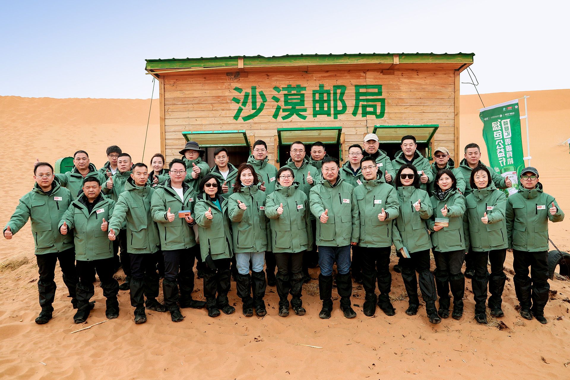 植树节活动当天,金领冠塞纳牧还带领“领婴汇”系统合作伙伴前往沙漠邮局,为线上认养梭梭树的宝宝亲手投递出了来自大漠深处的“春日祝福”,为宝宝们的植树节增加仪式感,同时让他们的公益之心发出萌芽。