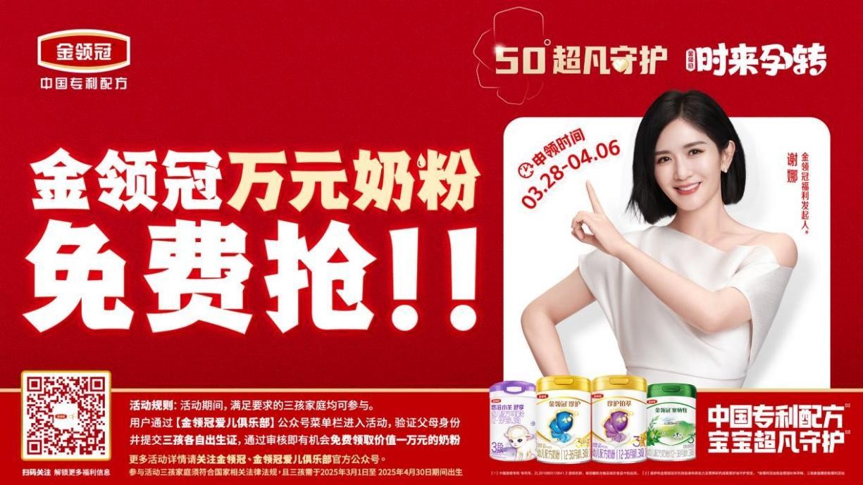 金领冠向三孩家庭免费送奶粉活动