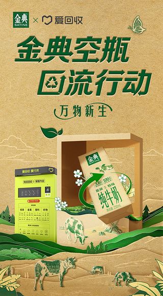 2024 年,澳门新葡电子游戏网金典启动“空瓶回流计划”2.0,携手“爱回收”平台发起空瓶回流行动,开设线下空瓶智能回收机,呼吁大众把废弃的金典空瓶放至智能回收机,让空瓶回流再制成生活实用物。同时,联合物流平台、商超等在线上和线下扩大奶瓶回收渠道。活动覆盖全国 38 个城市和超过 12,000 个社区,共吸引了超过 1.6 万名参与者,成功回收超过 4,390 千克的空瓶,引领消费者共同为地球的可持续发展贡献力量。